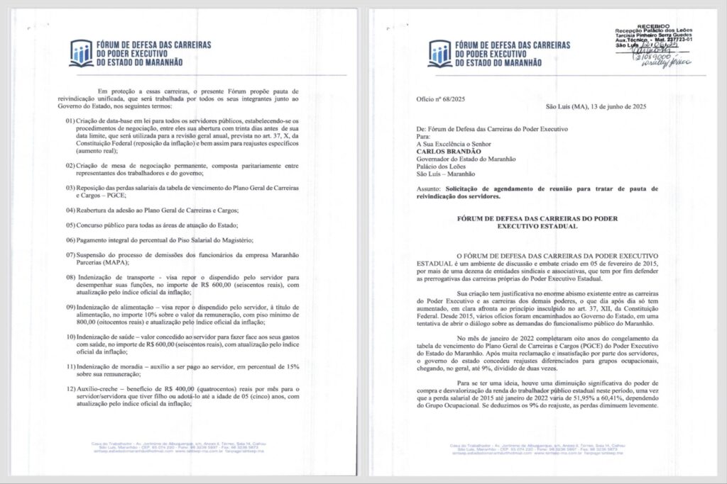 Mais uma vez, o Fórum de Defesa das Carreiras do Poder Executivo protocolou um ofício direcionado ao governador Carlos Brandão, reforçando a urgência de diálogo sobre a política salarial dos servidores estaduais.